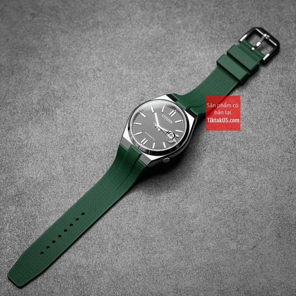Dây đồng hồ Citizen Tsuyosa cao su cao cấp FKM chốt thông minh Premium màu xanh lá