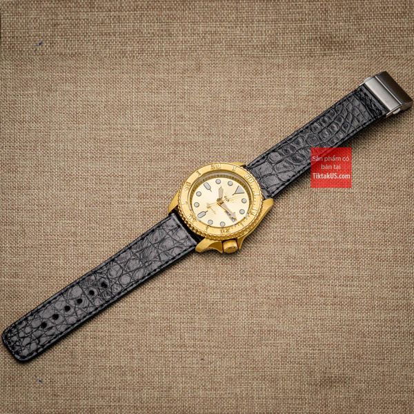 Dây đồng hồ da cá sấu thật kèm khóa một gấp giấu dây màu đen size 18mm - 19mm - 20mm - 21mm - 22mm
