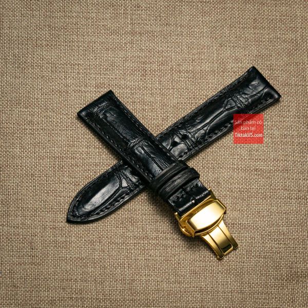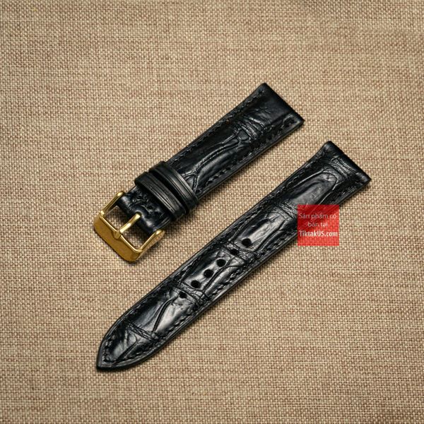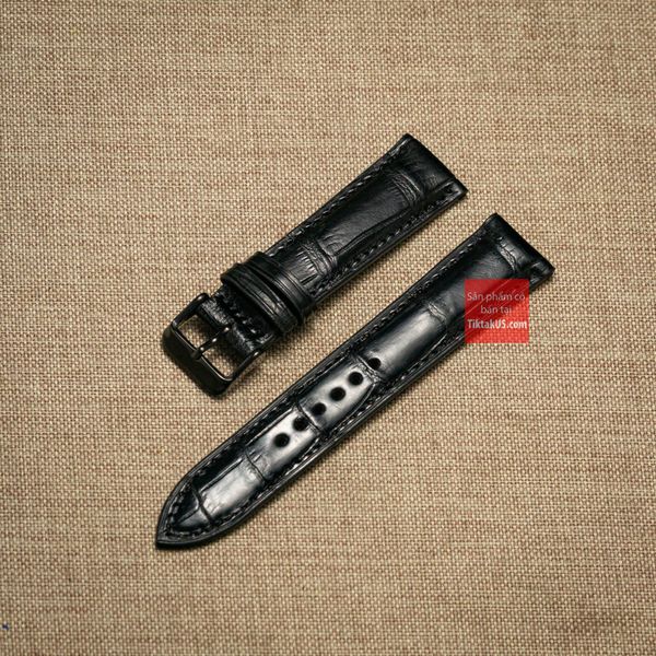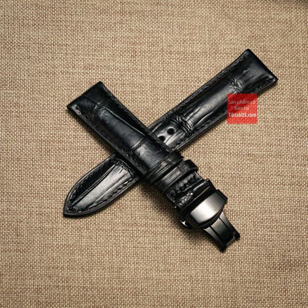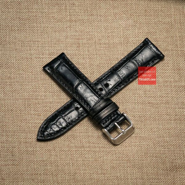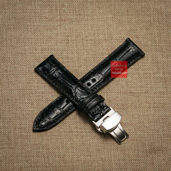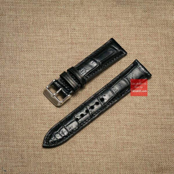 Dây đồng hồ da cá sấu thật màu ĐEN may thủ công kèm khóa, size 18mm - 19mm - 20mm - 21mm - 22mm
