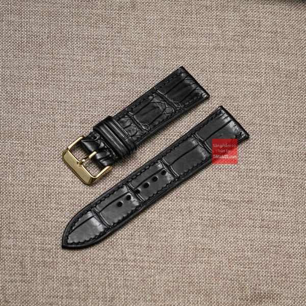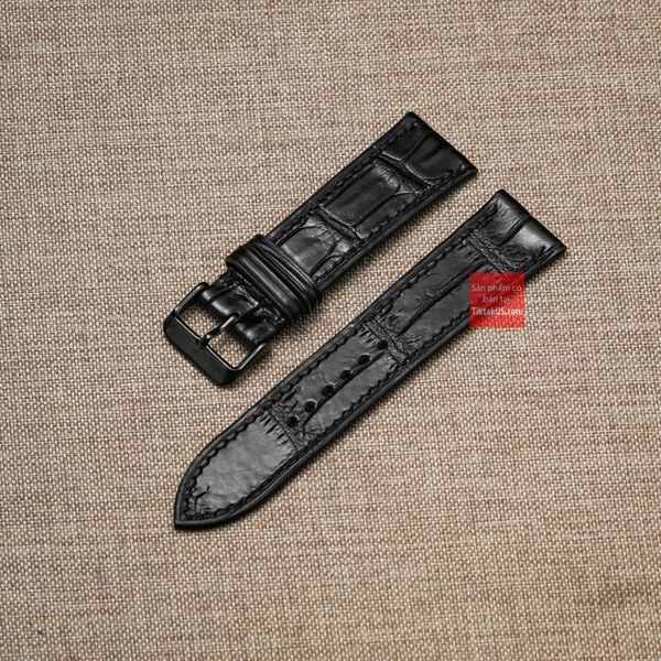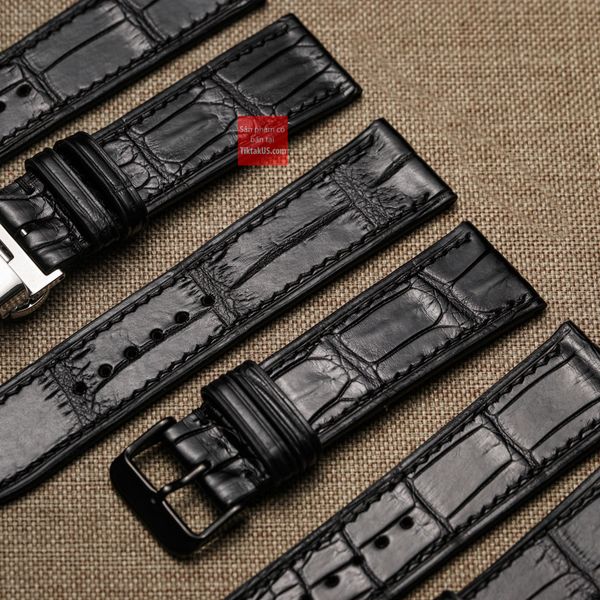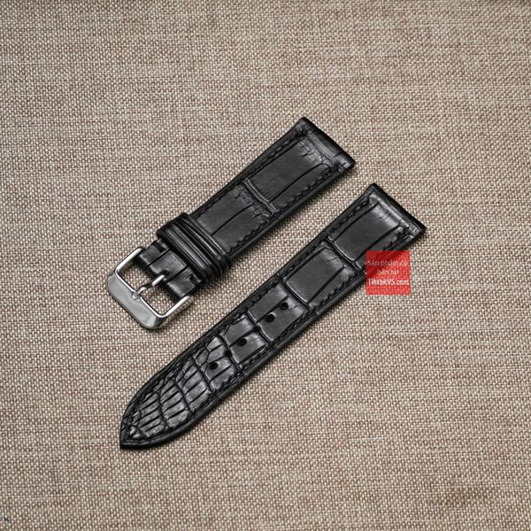 Dây đồng hồ da cá sấu thật màu ĐEN may thủ công handmade kèm khóa, size 18mm - 19mm - 20mm - 21mm - 22mm