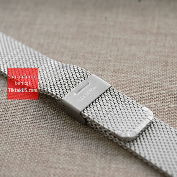 Dây đồng hồ thép lưới Mesh thép không gỉ cao cấp với thiết kế thời trang đi kèm với chất liệu thép không gỉ cao cấp giúp mang lại độ bền cao, thép sáng bóng.