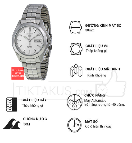 • Seiko 5 automatic SNKK87K1 có kích thước size mặt 38mm phù hợp với các chàng trai có cổ tay vừa và nhỏ. Chất liệu mặt kính Harlex, bền bỉ , chống trầy tương đối tốt và khả năng chống va đập tốt.