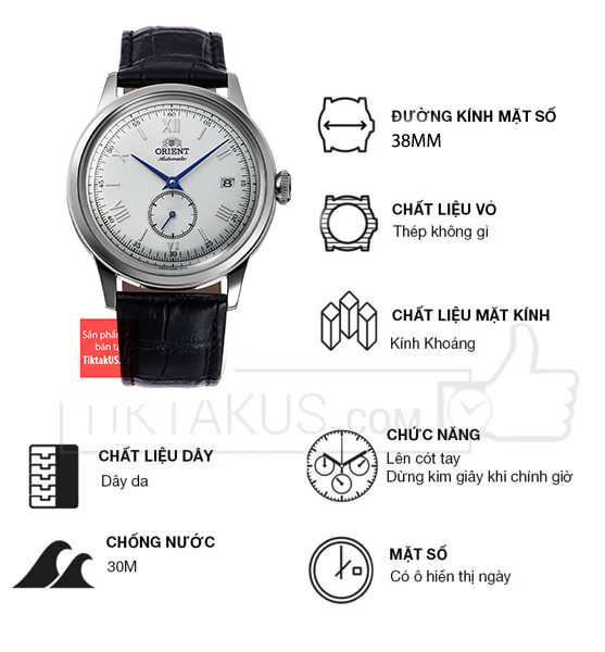 • Orient Sun and Moon có kích thước size mặt 38 mm phù hợp với các chàng trai có cổ tay vừa và to. Chất liệu mặt kính sapphire bền bỉ , chống trầy tốt và khả năng chống va đập tốt.
