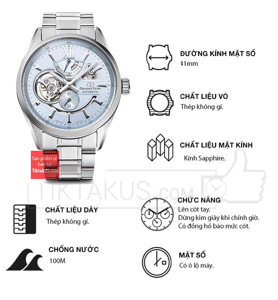 • Orient star Joker có kích thước size mặt 41 mm phù hợp với các chàng trai có cổ tay vừa và to. Chất liệu mặt kính sapphire bền bỉ , chống trầy tốt và khả năng chống va đập tốt.