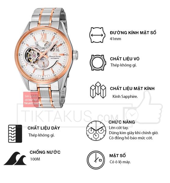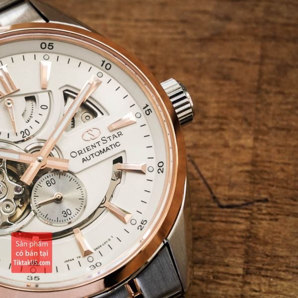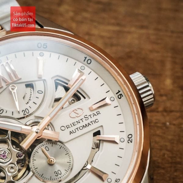 Orient Star SDK05001W0 dùng bộ máy đời cao với các chức năng của đồng hồ cao cấp như lên cót tay, dừng kim giây khi chình giờ. Thiết kế nổi bật của chiếc đồng hồ này chính là các ô lộ máy trên mặt số, và từng chi tiết nhỏ như cọc số, bộ kim đều được vát cạnh tạo nên một nét đẹp sắc sảo, chứng tỏ đẳng cấp của dòng Orient Star.