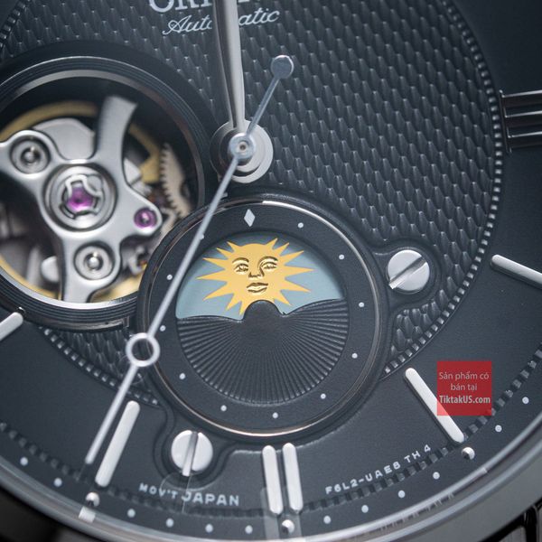 • Chiếc đồng hồ này còn được sở hữu bộ máy automatic F6T22 made in Japan độc quyền của Orient với những tính năng như lịch ngày giúp bạn kiểm soát tốt được thời gian. Ngoài ra, đồng hồ còn được trang bị các tính năng như lịch mặt trăng mặt trời Sun and Moon , vặn lên cót tay và dừng kim giây khi chỉnh giờ, giúp trải nghiệm sử dụng thuận tiện nhất.