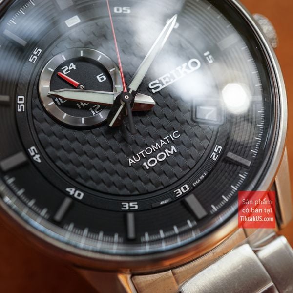 Toàn thân chiếc đồng hồ này mang thiết kế đơn giản, tinh tế. Điểm nhấn thể thao nằm ở mặt số với các hoa văn dạng Carbon và mặt đồng hồ phụ thể hiện 24 giờ. Mặt kính cong nhẹ tạo hiệu ứng nổi cho mặt số chính là nét đặc biệt của Seiko SSA381K1 so với các mẫu đồng hồ khác.