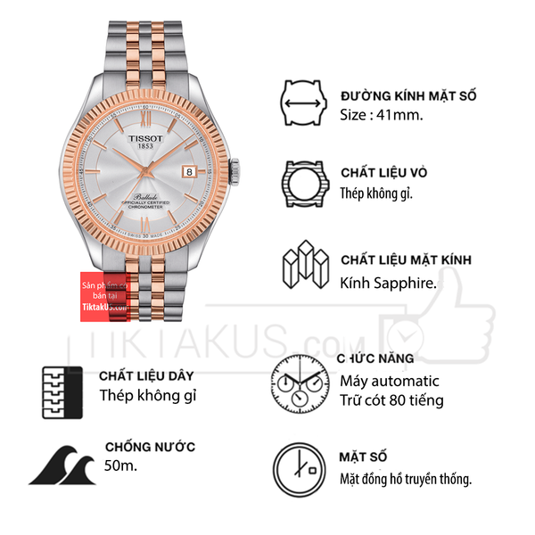 • Đồng hồ nam Tissot automatic Ballade là một trong những mẫu đồng hồ thuộc dòng Tissot automatic mới của thương hiệu Tissot đến từ Thụy Sĩ, đồng hồ Tissot automatic đã tạo nên tên tuổi của hãng Tissot trên thị trường đồng hồ nam Automatic .