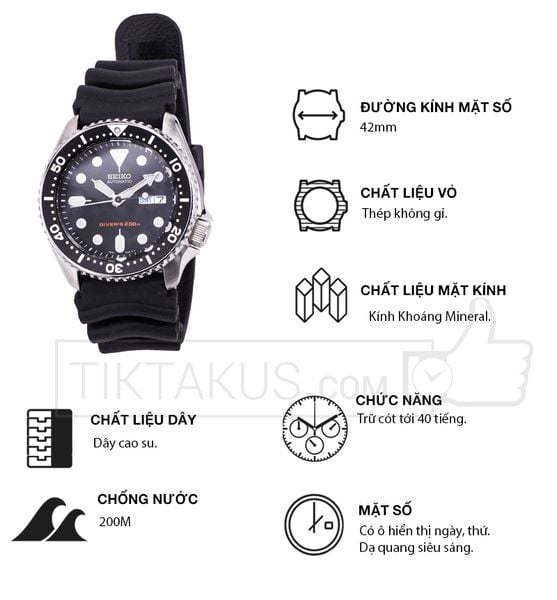 - Seiko SKX007KC là phiên bản thể thao của SKX007 với phần dây đồng hồ được thay thành dây cao su. Seiko SKX007KC là một chiếc đồng hồ mang đậm chất thể thao với tiêu chuẩn chống nước chuẩn Diver 200m. Với thiết kế toàn bộ vỏ đồng hồ bằng thép không gỉ và các chi tiết góc cạnh mạnh mẽ, viền bezel xoay đúng chất Diver, đây là một chiếc đồng hồ bạn sẽ thích ngay khi cầm trên tay nếu bạn là một fan của dòng đồng hồ thể thao.