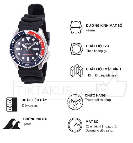 - Toàn bộ phần vỏ của chiếc đồng hồ này làm từ thép không gỉ 316L. Bộ vỏ dầy thiết kế phong cách riêng biệt của SKX009 chính là điều làm mê hoặc biết bao nhiêu fan của Seiko trên toàn thế giới.