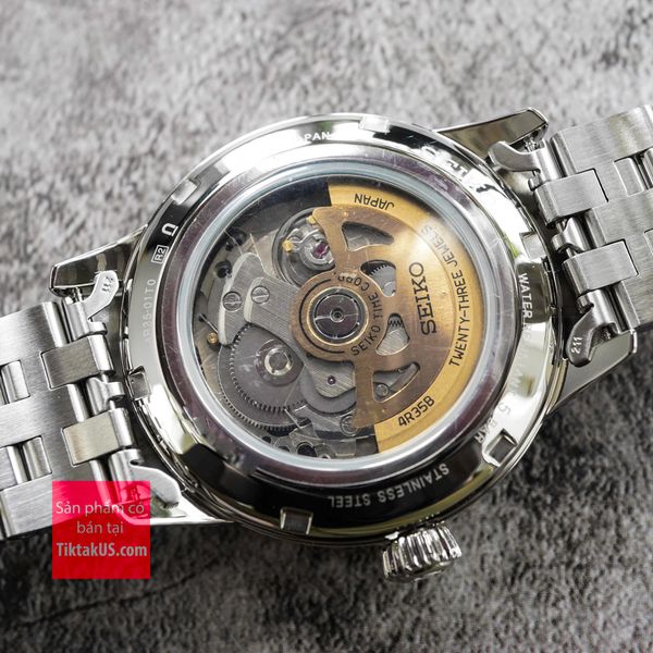 • Chiếc đồng hồ này còn được sở hữu bộ máy automatic 4R35 độc quyền của Seiko với những tính năng như ngày giúp bạn kiểm soát tốt được thời gian. Đặc biệt bộ máy Seiko automatic mới này còn có chức năng vặn lên cót tay và đừng kim giây khi chỉnh giờ ( hacking Stop) đi kèm với kim báo mức cót cùng với mức trữ cót ( năng lượng) tới 40 tiếng liên tục.