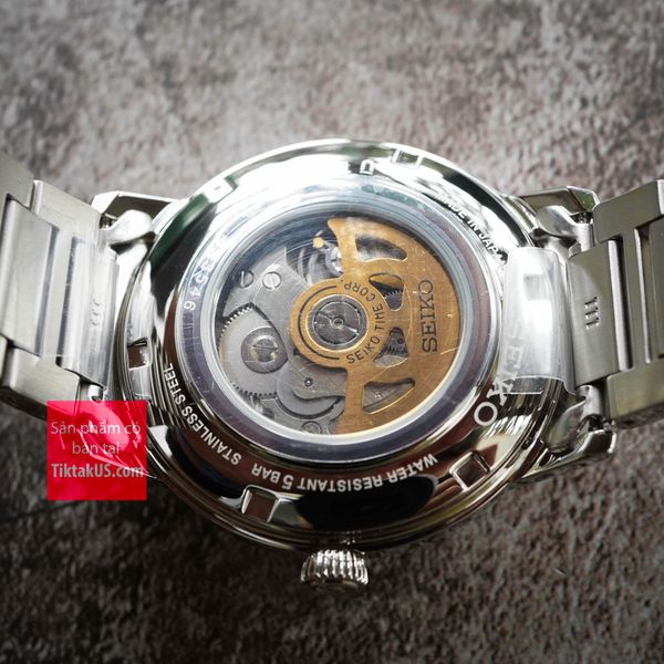 • Chiếc đồng hồ này còn được sở hữu bộ máy automatic 4R35 độc quyền của Seiko với những tính năng như lịch ngày giúp bạn kiểm soát tốt được thời gian. Đặc biệt bộ máy Seiko automatic mới này còn có chức năng vặn lên cót tay và đừng kim giây khi chỉnh giờ ( hacking Stop) đi kèm với kim báo mức cót cùng với mức trữ cót ( năng lượng) tới 40 tiếng liên tục.