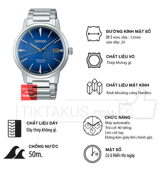 • Đồng hồ nam Seiko Presage cocktail SRPJ13J1 là một trong những mẫu đồng hồ thuộc dòng đồng hồ Seiko cao cấp Presage Automatic của thương hiệu Seiko đến từ Nhật Bản, đồng hồ Seiko Paresage Automatic đã tạo nên tên tuổi của hãng Seiko trên thị trường đồng hồ nam cao cấp.