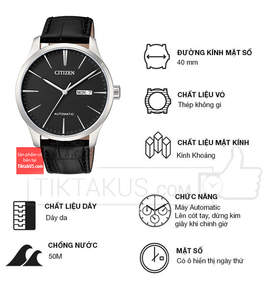 • Đồng hồ nam Citizen automatic NH8350-08E là một trong những mẫu đồng hồ thuộc dòng Dress watch của thương hiệu Citizen đến từ Nhật Bản, đồng hồ Citizen automatic đã tạo nên tên tuổi của hãng Citizen trên thị trường đồng hồ nam Automatic giá rẻ.