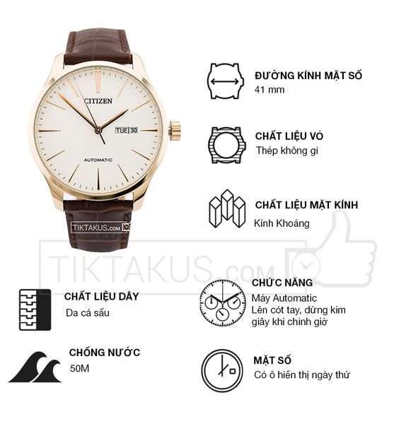 - Đồng hồ Citizen NH8353-18A có thiết kế mang dậm chất cổ điển, sang trọng với phần thân máy mạ vàng và mặt số màu trắng. Sự phối hợp giữa màu sắc và thiết kế đã biến NH8353-18A thành một chiếc đồng hồ không thể thiếu trong bộ sưu tập đồng hồ của những người yêu nét đẹp sang trọng, cổ điển.