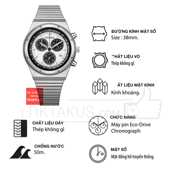 • Chiếc đồng hồ này còn được sở hữu bộ máy Citizen Chronograph Eco-Drive độc quyền của Citizen với những tính năng như bấm giờ thể thao giúp bạn kiểm soát tốt được thời gian.