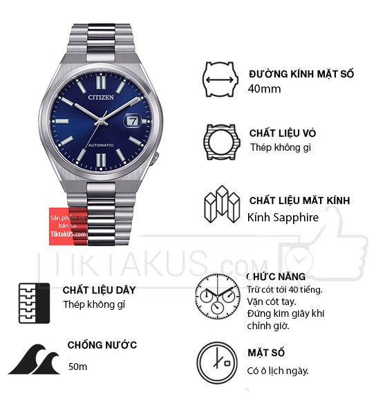 • Đồng hồ nam Citizen automatic NJ0150-81L có kích thước size mặt 40mm phù hợp với các chàng trai có cổ tay trung bình và lớn. Chất liệu mặt kính Sapphire, bền bỉ , chống trầy tốt .