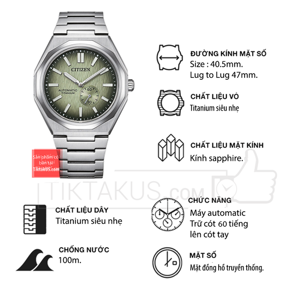 • Đồng hồ nam Citizen Zenshin automatic Super Titanium Forza NK5020-58X là một trong những mẫu đồng hồ thuộc dòng Dress watch Citizen tsuyosa của thương hiệu Citizen đến từ Nhật Bản, đồng hồ Citizen automatic đã tạo nên tên tuổi của hãng Citizen trên thị trường đồng hồ nam Automatic giá rẻ.