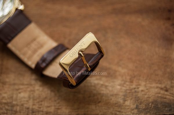 - Bộ vỏ của Orient Cabalero FAG00002W0 làm từ thép không gỉ, độ mỏng của chiếc đồng hồ này chính là ưu điểm tiếp theo kêt hợp với mặt kính cong, tạo nên một tổng thể đẹp tinh tế như một món trang sức đắt tiền chứ không chỉ là chiếc đồng hồ nữa. Điểm nhấn của chiếc đồng hồ này so với người anh Bambino chính là phần lộ máy trên mặt số. Chính chi tiết này đã gây điểm với những người yêu thích vẻ đẹp cơ khí của những bộ máy Automatic.