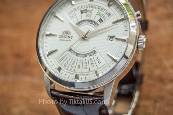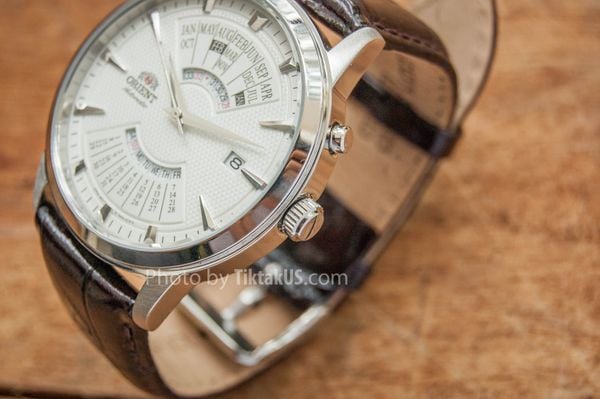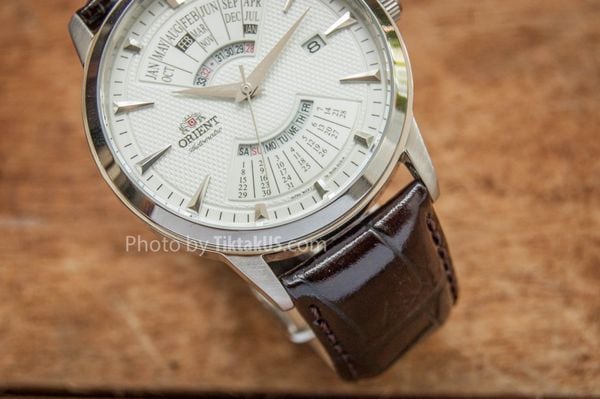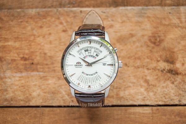 - Dỏng sản phẩm lịch vạn niên - Multi Year là một trong những dòng sản phẩm nổi tiếng nhất của Orient, Với đặc điểm là chức năng lịch vạn niên ghi nhớ đầy đủ các tháng có số ngày khác nhau, thậm chí là khả năng hiển thị các năm nhuận, chuyển ngày trong tháng …. Orient Multi YearFEU0A005WH giống như một món đồ chơi tinh xảo của phái mạnh chứ không chỉ là một chiếc đồng hồ nữa.