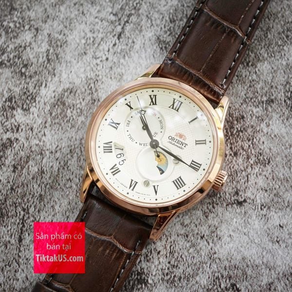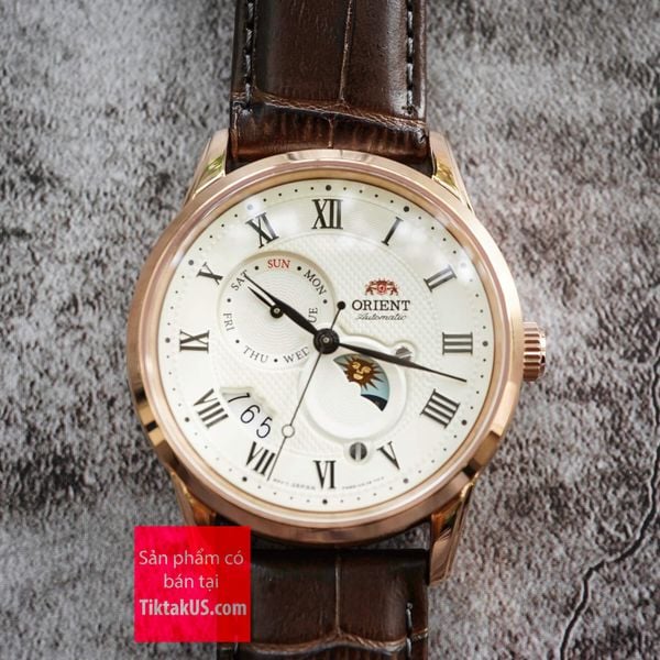 Đồng hồ nam dây da Orient Sun and Moon gen 3 RA-AK0007S30B ( Rose gold) ( RA-AK0007S10B )
