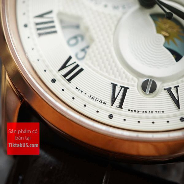 • Chiếc đồng hồ này còn được sở hữu bộ máy automatic F6T22 made in Japan độc quyền của Orient với những tính năng như lịch ngày giúp bạn kiểm soát tốt được thời gian. Ngoài ra, đồng hồ còn được trang bị các tính năng như lịch mặt trăng mặt trời Sun and Moon , vặn lên cót tay và dừng kim giây khi chỉnh giờ, giúp trải nghiệm sử dụng thuận tiện nhất.