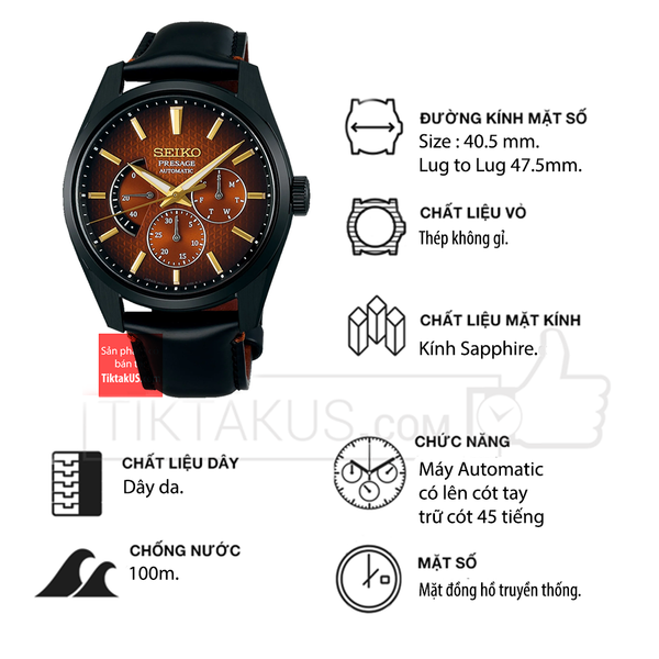 • Thuộc Bộ sưu tập Seiko Presage kế thừa lịch sử hơn 142 năm từ khi tập đoàn Seiko thành lạp từ năm 1881 . Bộ sưu tập đồng hồ cơ cao cấp Seiko Presage Automatic này là những chiếc đồng hồ đeo tay nam cao cấp với thiết kế sang trrongj và đẳng cấp, đi kèm chất lượng hoàn thiện đỉnh cao. Một chiếc đồng hồ đeo tay với ngoại hình sang trọng và nam tính, Seiko Presage đã dần trở thành một chiếc đồng hồ đeo tay thời trang phù hợp nhất dành cho nam giới.