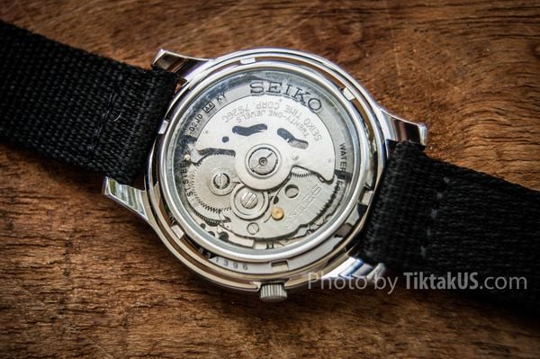 - Seiko SNK803 có nắp lưng bằng kính, khoe trọn bộ máy Automatic bên trong. Đây là một chi tiết nhỏ nhưng làm hài lòng khá nhiều khách hàng, quả là một sự tinh tế của Seiko.