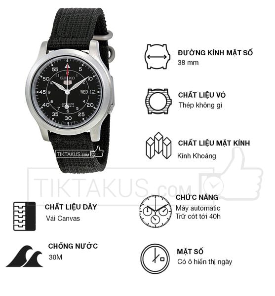 Đồng hồ nam dây dù Seiko 5 SNK809K2 (Đen)