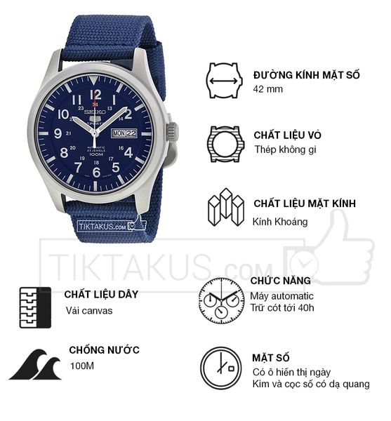 Đồng hồ nam dây dù Seiko 5 SNZG11J1 (Xanh dương) Made in Japan