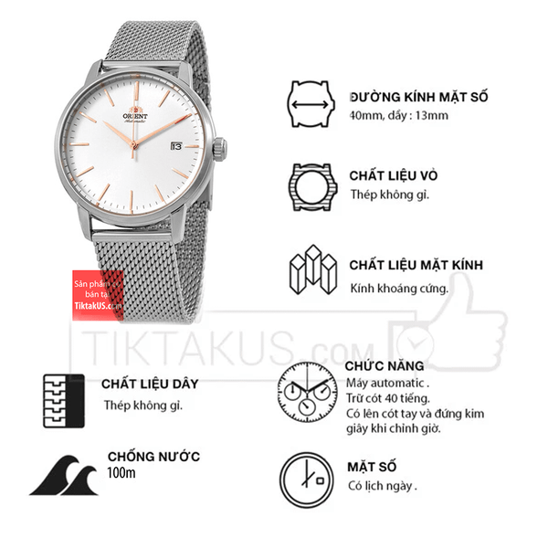 Orient RA-AC0E07S sử dụng dòng máy mới với đầy đủ các tính năng cao cấp như lên cót tay và đứng kim giây khi chỉnh giờ, mức chống nước 100m mang đến sự thuận tiện tối đa cho người dùng.