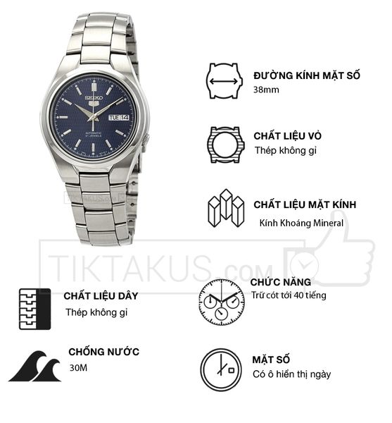 - Seiko SNK603K1 sử dụng máu Automatic mã 7s26 của Seiko với sai số thấp và khả năng trữ cót lên tới 40 tiếng. Kích thước mặt số là 38mm, khá vừa vặn với cổ tay của người châu Á.