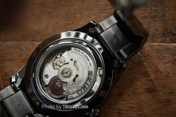 - Seiko SNZG17 có nắp lưng bằng kính, khoe trọn bộ máy Automatic bên trong. Đây là một chi tiết nhỏ nhưng làm hài lòng khá nhiều khách hàng, quả là một sự tinh tế của Seiko.