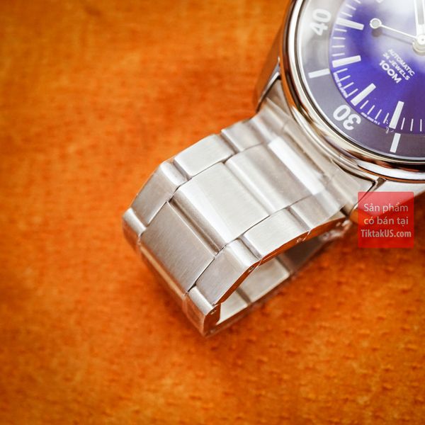 - Toàn thân chiếc đồng hồ này làm từ thép không gỉ 316L, Mặt số màu xanh thẫm làm nền cho các chi tiết khác như các cọc số và bộ kim màu bạc sáng. Mỗi cọc số có một viền inox bọc xung quanh, thể hiện sự chăm chút đến những chi tiết nhỏ nhất của nhà sản xuất đồng hồ.