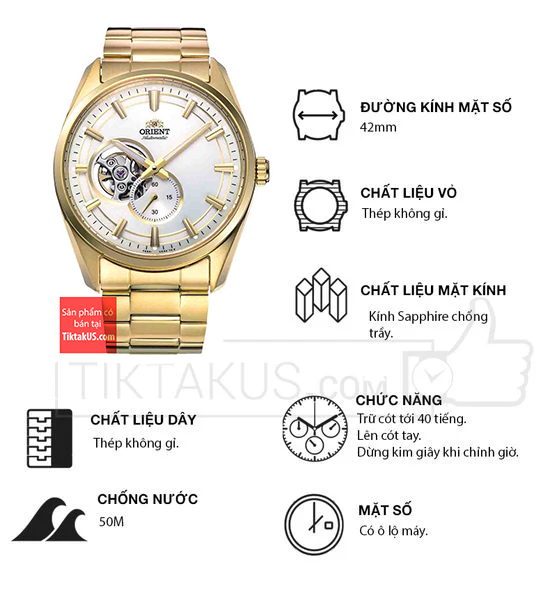 • Orient Contemporary có kích thước size mặt 42 mm phù hợp với các chàng trai có cổ tay vừa và to. Chất liệu mặt kính Sapphire, bền bỉ , chống trầy và khả năng chống va đập tốt.