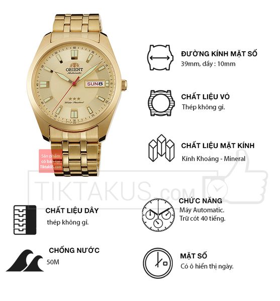 - Từng là một trong những biểu tượng của đồng hồ Orient tại Việt Nam những năm 70 của thế kỷ 20, ngày nay Orient 3 sao đã được Orient hồi sinh lại với thiết kế vẫn giữ nguyên cái chất cổ điển và sự gần gũi quen thuộc. Orient RA-AB0016G19B là dòng sản phẩm thuộc series hoài cổ của Orient.