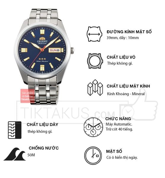- Từng là một trong những biểu tượng của đồng hồ Orient tại Việt Nam những năm 70 của thế kỷ 20, ngày nay Orient 3 sao đã được Orient hồi sinh lại với thiết kế vẫn giữ nguyên cái chất cổ điển và sự gần gũi quen thuộc. Orient 3 sao RA-AB0017B19B là dòng sản phẩm thuộc series hoài cổ của Orient.
