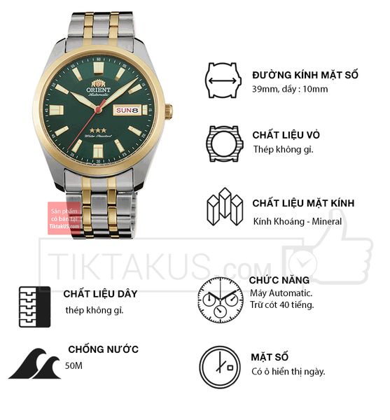 - Từng là một trong những biểu tượng của đồng hồ Orient tại Việt Nam những năm 70 của thế kỷ 20, ngày nay Orient 3 sao đã được Orient hồi sinh lại với thiết kế vẫn giữ nguyên cái chất cổ điển và sự gần gũi quen thuộc. Orient 3 sao RA-AB0026E19B là dòng sản phẩm thuộc series hoài cổ của Orient.