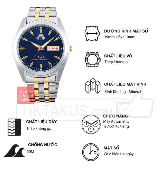 - Từng là một trong những biểu tượng của đồng hồ Orient tại Việt Nam những năm 70 của thế kỷ 20, ngày nay Orient 3 sao đã được Orient hồi sinh lại với thiết kế vẫn giữ nguyên cái chất cổ điển và sự gần gũi quen thuộc. Orient RA-AB0029L19B là dòng sản phẩm thuộc series hoài cổ của Orient.