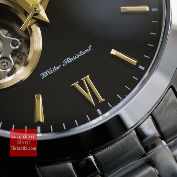 - Điểm nhấn của chiếc đồng hồ này chính là chi tiết “mắt vàng”. Với phần lộ máy ở mặt trước được mạ vàng phần viền xung quanh, và phía sau cũng là một " cửa sổ " lớn khoe trọn phần máy của chiếc đồng hồ, một chi tiết yêu thích của những người lựa chọn dòng đồng hồ Open- Heart này.