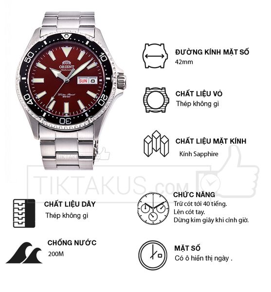 • Đồng hồ nam Orient Mako 42 mm RA-AA0003R19B kính sapphire là một trong những mẫu đồng hồ kiểu dáng thể thao nổi bật của thương hiệu Orient đến từ Nhật Bản, sản phẩm này đã tạo nên tên tuổi của hãng Orient trên thị trường đồng hồ thể thao nam Automatic giá rẻ.