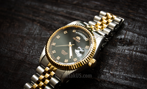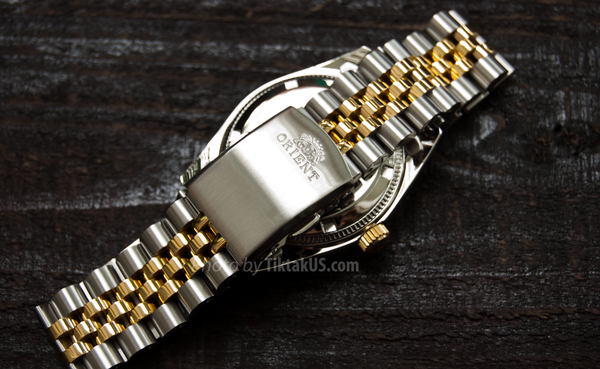 Mẫu đồng hồ Orient là sự kết hợp hoàn hảo mặt tròn màu trắng và dây kim loại màu bạc viền vàng tạo điểm nhấn cho dây dành cho những ai thích phong cách sang trọng nổi bật. Kim và các vạch đồng hồ rõ nét màu vàng nổi bật giúp bạn nhìn rõ giờ hơn. Đồng hồ có lịch ngày giúp bạn có thể thu xếp trong công việc. Với công nghệ mạ vàng tiên tiến nhất không bị bay màu không bị bong tróc mang vẻ đẹp bền vững thời gian.