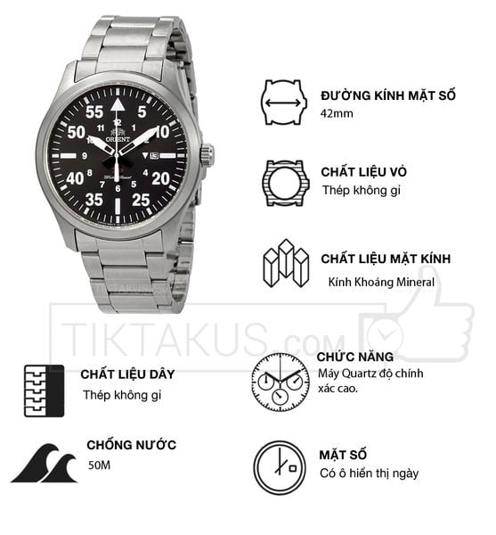 - Orient Sporty FUNG2001B0 là phiên bản đồng hồ theo phong cách quân đội của Orient. Với thiết kế mạnh mẽ, bộ vỏ và dây làm từ thép không gỉ 316L , Orient Sporty FUNG2001B0 hứa hẹn sẽ là một món đồ chơi không thể thiếu cho những người đam mê phong cách thể thao, bụi bặm.