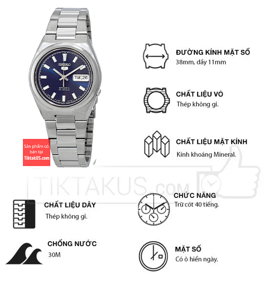 • Seiko 5 automatic SNKC51J1 có kích thước size mặt 38mm phù hợp với các chàng trai có cổ tay vừa và nhỏ. Chất liệu mặt kính Harlex, bền bỉ , chống trầy tương đối tốt và khả năng chống va đập tốt.