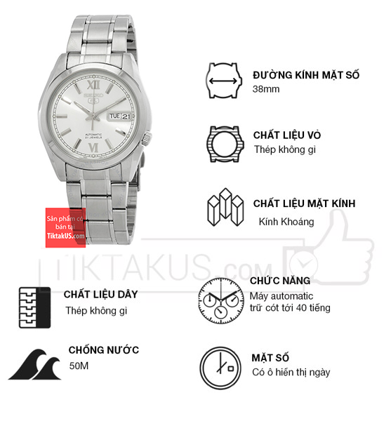 • Seiko 5 automatic SNKL51K1 có kích thước size mặt 38mm phù hợp với các chàng trai có cổ tay vừa và nhỏ. Chất liệu mặt kính Harlex, bền bỉ , chống trầy tương đối tốt và khả năng chống va đập tốt.
