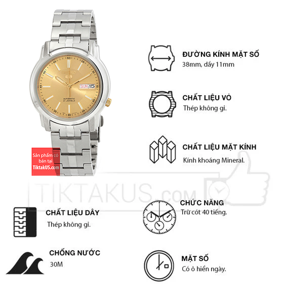 • Seiko 5 automatic SNKL81K1 có kích thước size mặt 38mm phù hợp với các chàng trai có cổ tay vừa và nhỏ. Chất liệu mặt kính Harlex, bền bỉ , chống trầy tương đối tốt và khả năng chống va đập tốt.