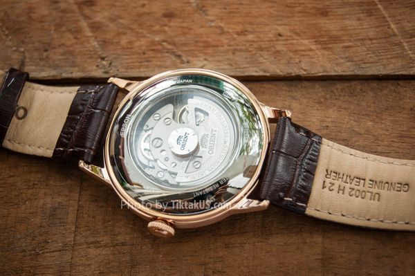 - Mặt sau vẫn là kính , giúp khoe trọn vẹn vẻ đẹp của bộ máy F6724 với các chức năng như dừng kim giây khi chỉnh giờ, lên cót tay