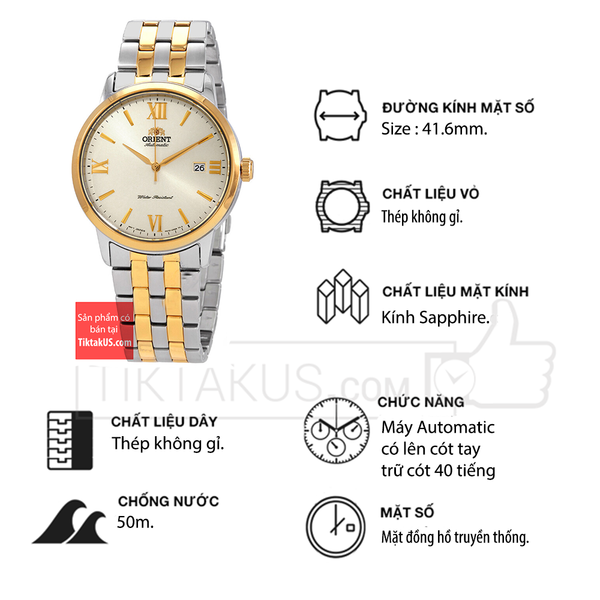 • Orient Contemporary có kích thước size mặt 41.6mm phù hợp với các chàng trai có cổ tay vừa và to. Chất liệu mặt kính Sapphire, bền bỉ , chống trầy và khả năng chống va đập tốt.