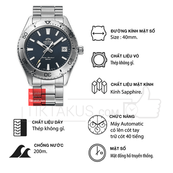 Đồng hồ nam Orient Mako 40 mm RA-AC0Q02L10B ( RA-AC0Q02L ) kính sapphire RA-AC0Q02L30B