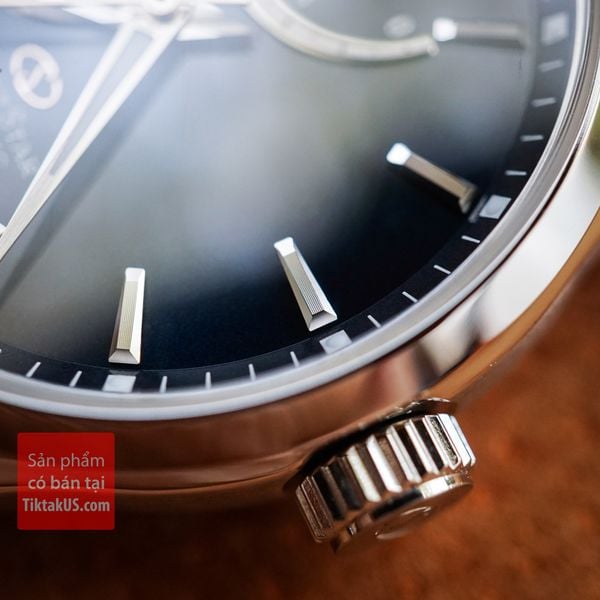 - Hòa quyện trong gam màu trắng bạc của mặt đồng hồ, đó là màu bạc của các con số và kim chỉ thời gian. Điểm nhấn chính trên mặt đồng hồ chính là ô lộ máy khoe trọn vẻ đẹp cơ khí của bộ máy sản xuát tại Nhật Bản. Các mốc thời gian được thể hiện bằng các cọc nhọn vuốt sắc như thanh bảo kiếm. Từng đường nét đều rất sắc bén và tinh tế. Với gam màu tối toát lên sự quyền quý, hiện đại và sang trọng của chủ nhân sở hữu chúng.